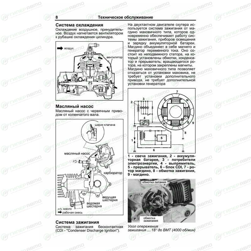 Издание содержит подробные сведения по ремонту и регулировке механизмов двигателя, трансмиссии, электрооборудования, систем зажигания (CDI), зарядки, а также возможные неисправности и методы их устранения, сопрягаемые размеры основных деталей и пределы их допустимого износа.
