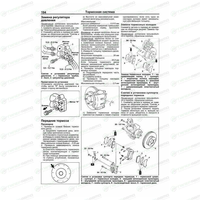 - Подробно рассмотрены принципы работы и процедуры проверки, регулировки и обслуживания системы ABS (антиблокировочной системы тормозов).