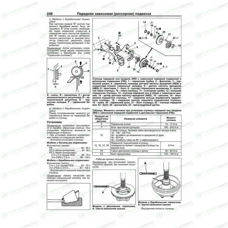 Издание содержит руководство по эксплуатации, подробные сведения по техническому обслуживанию автомобилей, диагностике, ремонту и регулировке элементов систем двигателя (в т.ч. системы управления двигателем, топливной системы (производства Denso, Zexel (ТНВД типов VRZ, V4)), турбонаддува, рециркуляции отработавших газов (EGR), запуска и зарядки), механической коробки передач (МКПП), раздаточной коробки, редукторов переднего и заднего моста (включая модели с дифференциалом повышенного трения заднего моста), элементов тормозной системы, рулевого управления (для моделей с зависимой и независимой подвеской), подвески, кузовных элементов, систем кондиционирования и вентиляции.