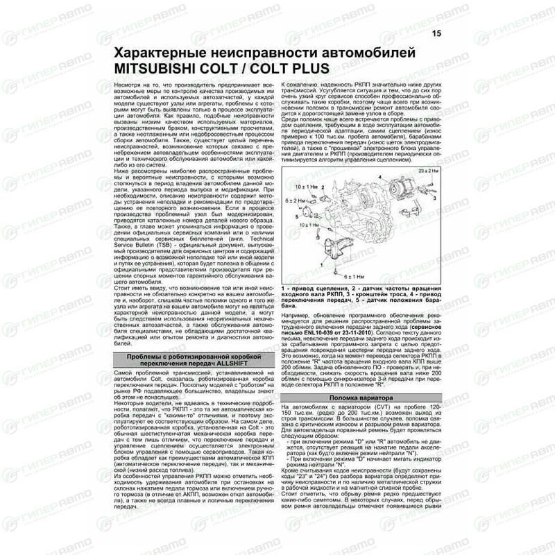 Руководство по эксплуатации, техническому обслуживанию и ремонту Mitsubishi Colt с бензиновым двигателем (2004-2012 гг.)