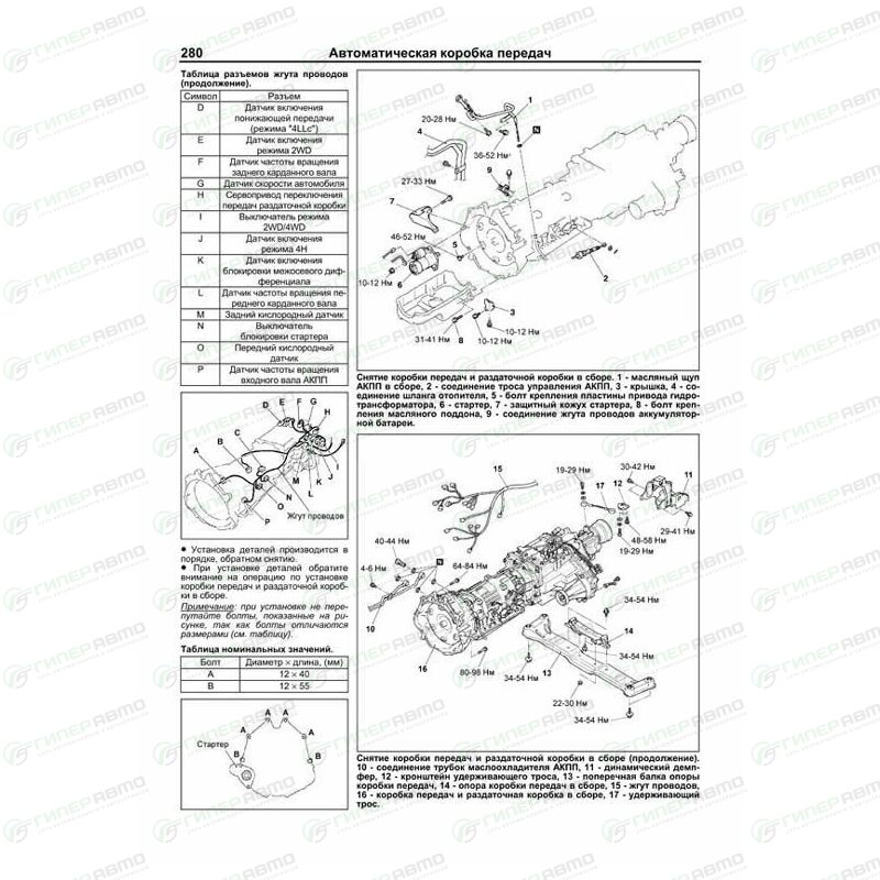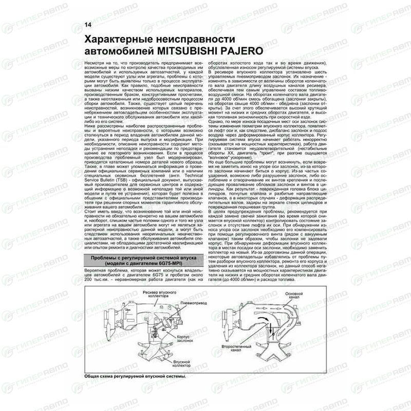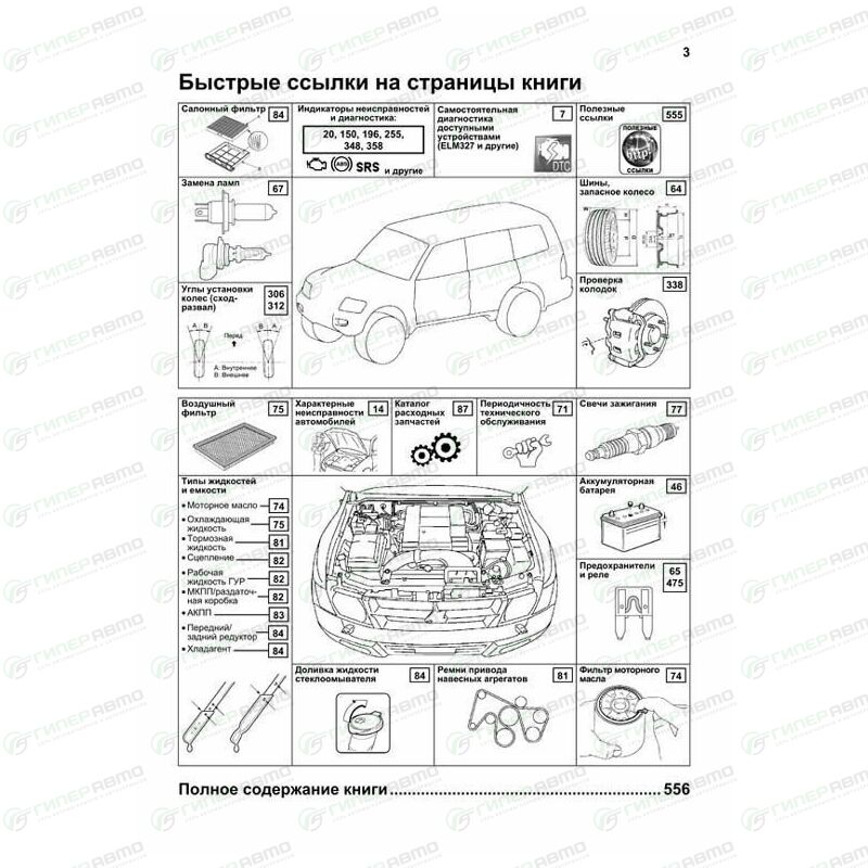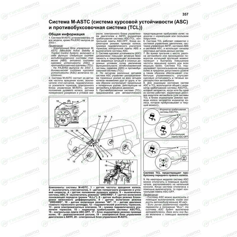 Издание содержит руководство по эксплуатации, подробные сведения по техническому обслуживанию автомобилей, диагностике, ремонту и регулировке элементов систем двигателя (в т.ч. систем распределенного (MPI) и непосредственного (GDI) впрыска топлива, зажигания, запуска и зарядки), механических (МКПП) и автоматических (АКПП) коробок передач, раздаточной коробки (включая систему управления полным приводом (Super select 4WD-II)), переднего и заднего моста, элементов тормозной системы (включая антиблокировочную систему тормозов (ABS) и системы M-ASTC (система курсовой устойчивости (ASC) и противобуксовочная система (TCL))), рулевого управления, подвески, кузовных элементов, кондиционирования и вентиляции, системы пассивной безопасности (SRS).
