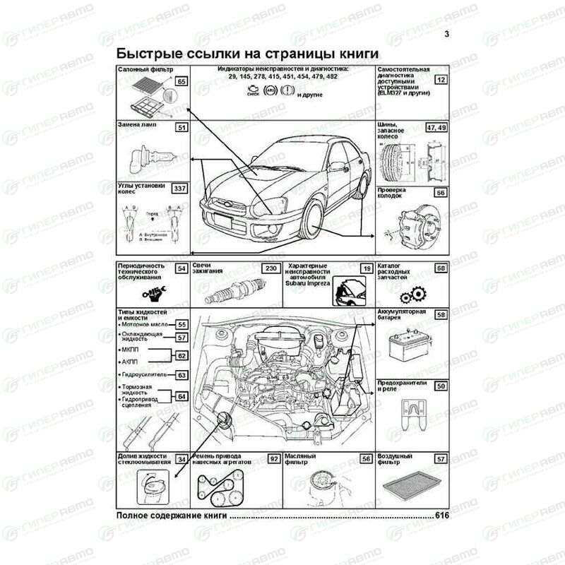 Руководство по эксплуатации, техническому обслуживанию и ремонту Subaru Impreza с бензиновым двигателем (2000-2007 гг.)