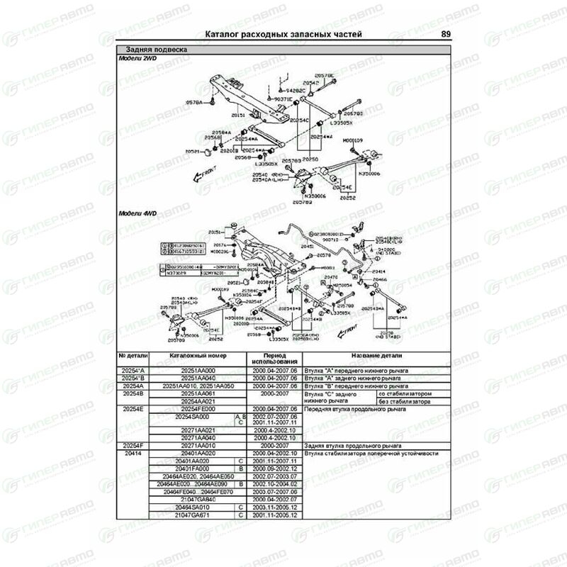- Приведены инструкции по диагностике 9 электронных систем: управления двигателем (EJ161 и EJ201, EJ205 EU), АКПП, ABS, AC, SRS, иммобилайзера и системы поддержания скорости.