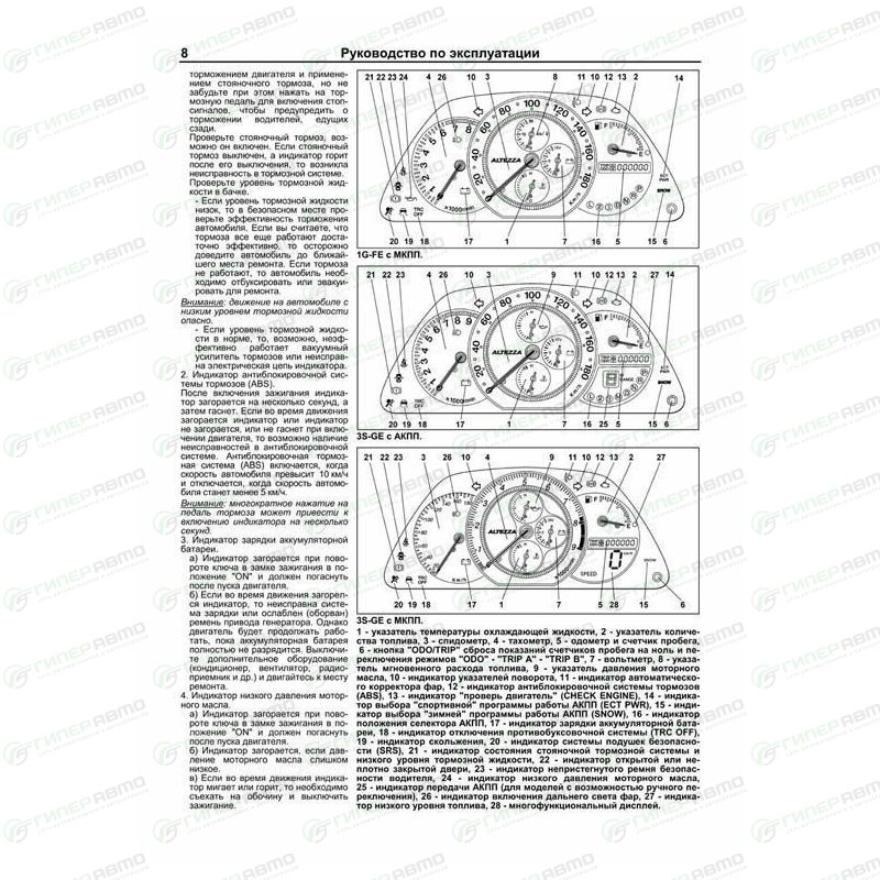 Руководство по эксплуатации, техническому обслуживанию и ремонту Toyota Altezza с бензиновым двигателем (1998-2005 гг.)