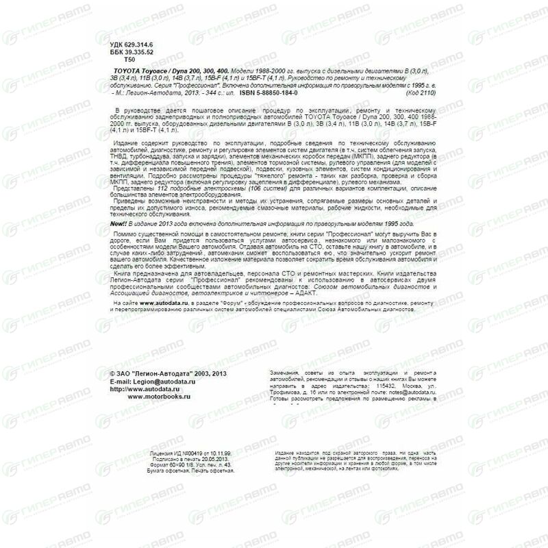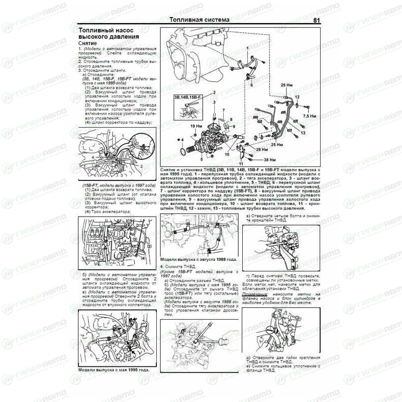 Руководство по эксплуатации, техническому обслуживанию и ремонту Toyota Dyna с дизельным двигателем (1988-2000 гг.)