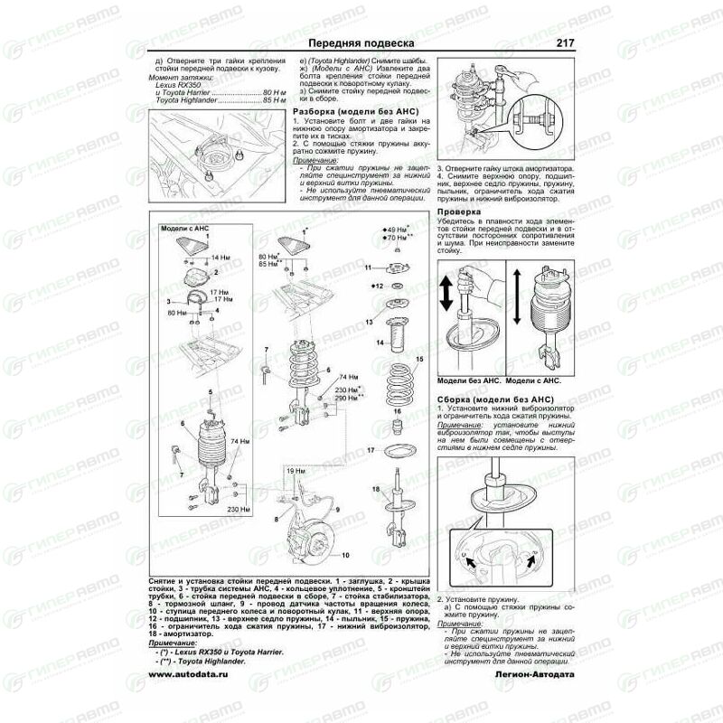 Издание содержит руководство по эксплуатации, описание систем, подробные сведения по техническому обслуживанию автомобиля; диагностике, ремонту и регулировке некоторых элементов систем двигателя (в. т.ч. систем впрыска топлива, зажигания, запуска и зарядки), элементов автоматической коробки передач, раздаточной коробки, тормозной системы (включая антиблокировочную систему тормозов (ABS), систему экстренного торможения (ВА), систему курсовой устойчивости (VSC), противобуксовочную систему (TRC), систему помощи при трогании на подъеме (HAC) и систему помощи при спуске (DAC)), рулевого управления (включая гидроусилитель, электроусилитель (EPS) (Highlander) и систему регулировки положения рулевой колонки) и подвески (включая активную система управления высотой расположения кузова (AHC)).