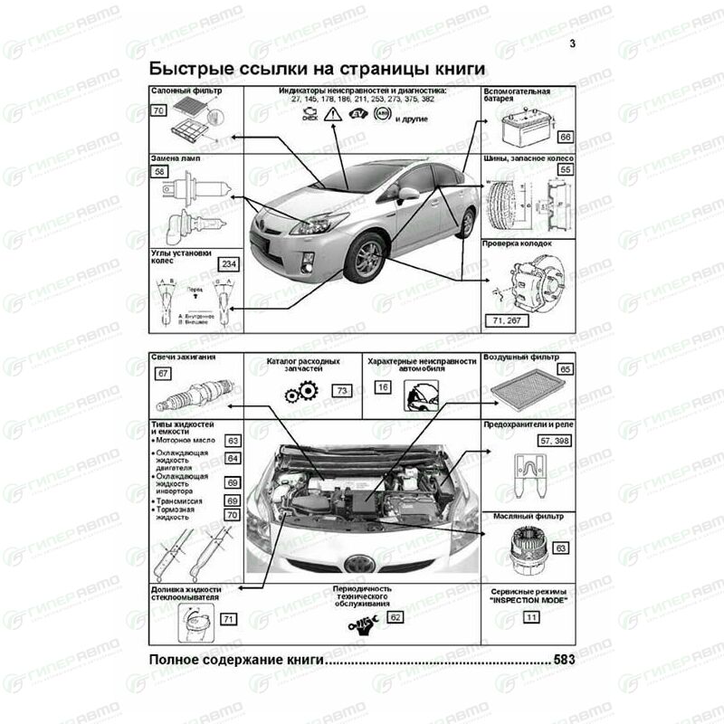 Руководство по эксплуатации, техническому обслуживанию и ремонту Toyota Prius с бензиновым двигателем (2009-2015 гг.)