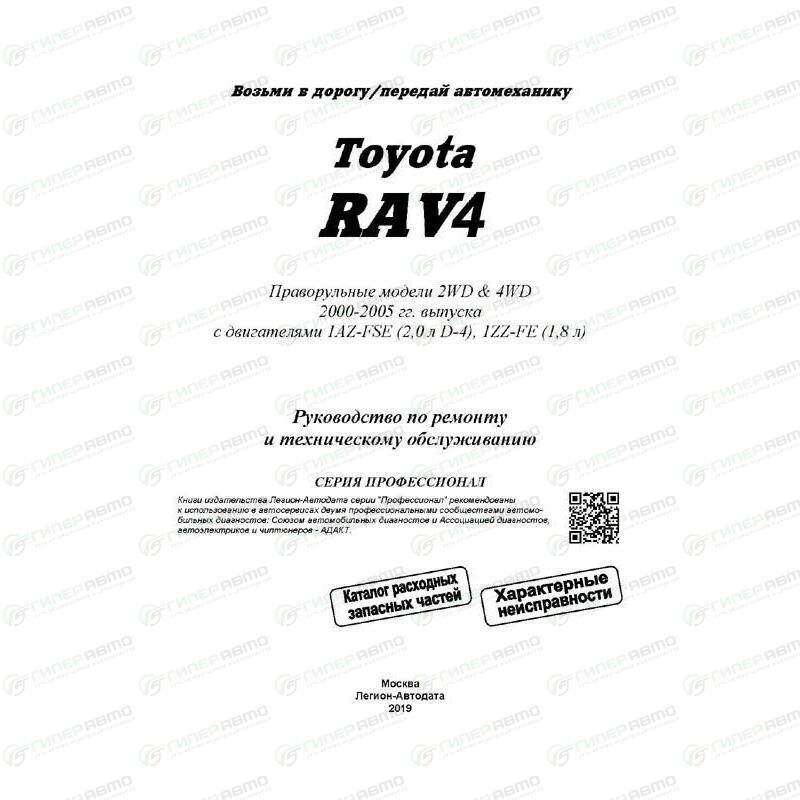 Руководство по эксплуатации, техническому обслуживанию и ремонту Toyota RAV4 с бензиновым двигателем (2000-2005 гг.)