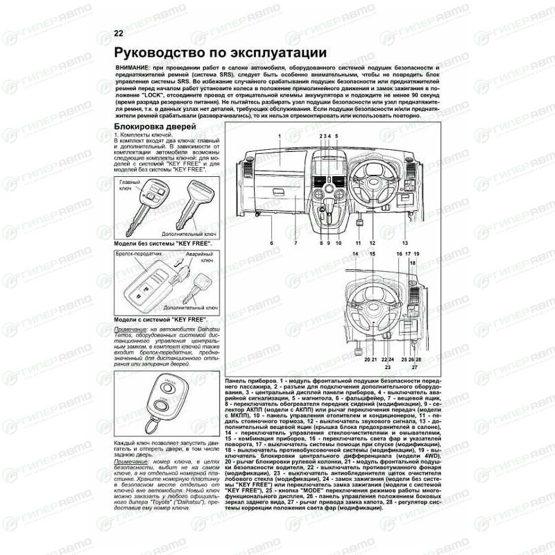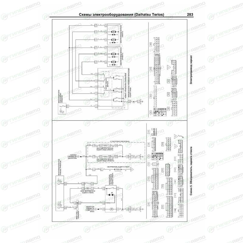 - Представлены 26 основных электросхем для Daihatsu Terios (22 системы) и 36 основных электросхем для Toyota Rush (28 систем) для различных вариантов комплектации, описание большинства элементов электрооборудования.
