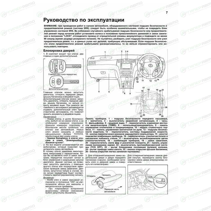 Издание содержит подробные сведения по диагностике и ремонту элементов системы управления двигателем, системы VVT-i (системы изменения фаз газораспределения), инструкции по использованию систем самодиагностики двигателя, АКПП, ABS (антиблокировочной системы тормозов), BA, TRC (противобуксовочной системы), VSC (системы курсовой устойчивости), SRS (системы пассивной безопасности), TEMS (системы изменения жесткости подвески), рекомендации по регулировке и ремонту автоматической коробки передач, элементов тормозной системы (включая ABS), рулевого управления и подвески.