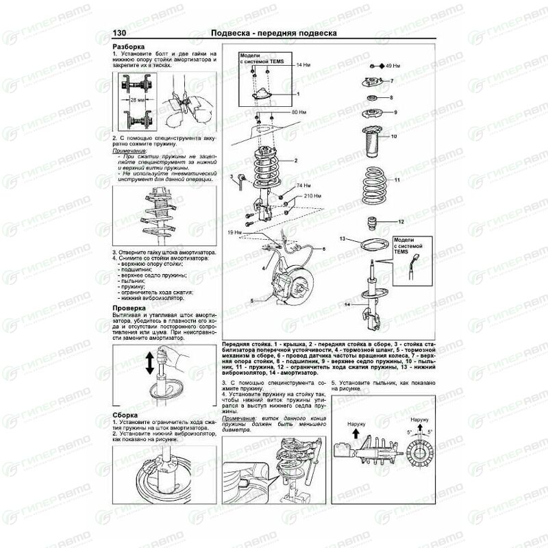 - Подробно рассмотрены процедуры проверки, регулировки и обслуживания систем: ABS, TRC, VSC, SRS и TEMS.