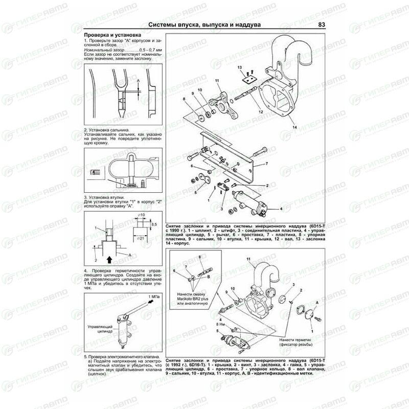 Руководство по ремонту и обслуживанию дизельных двигателей Mitsubishi, Hyundai (6D14, 6D15, 6D16, 6D17, D6BR) (1990-1999 гг.)