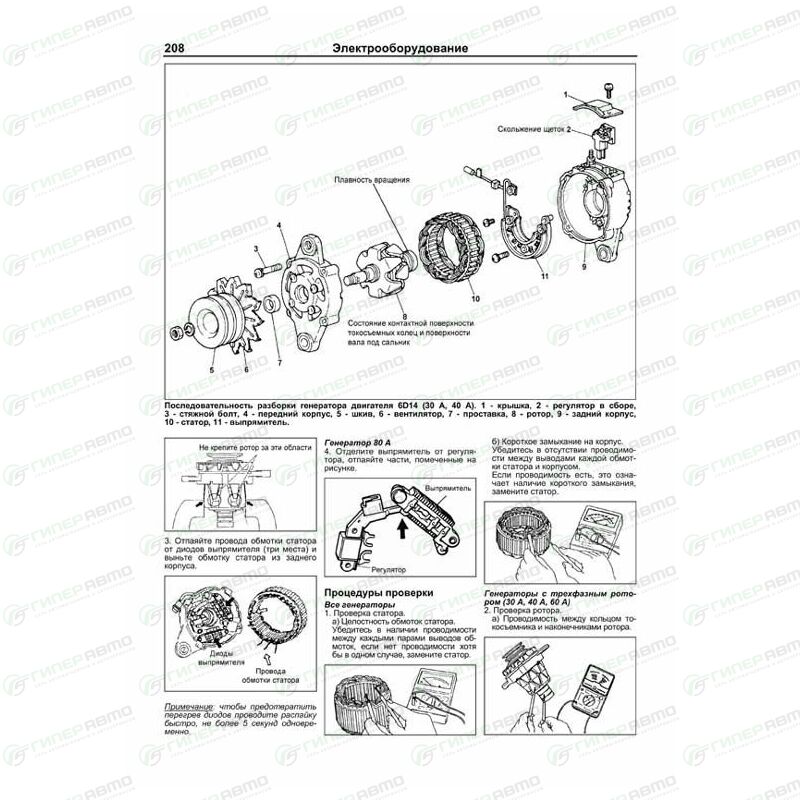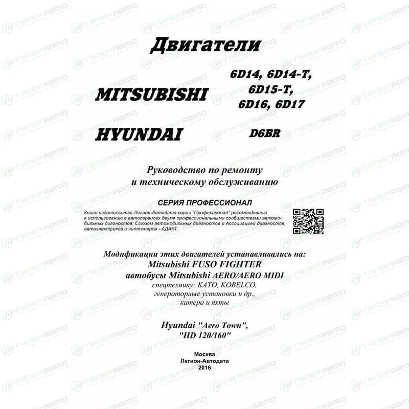 Руководство по ремонту дизельных двигателей Mitsubishi серии 6D14 (6557 см3), 6D14-T (6557 см3), 6D15-T (6919 см3), 6D16 (7545 см3), 6D17 (8201 см3) и двигателей Hyundai серии D6BR (7545 см3).