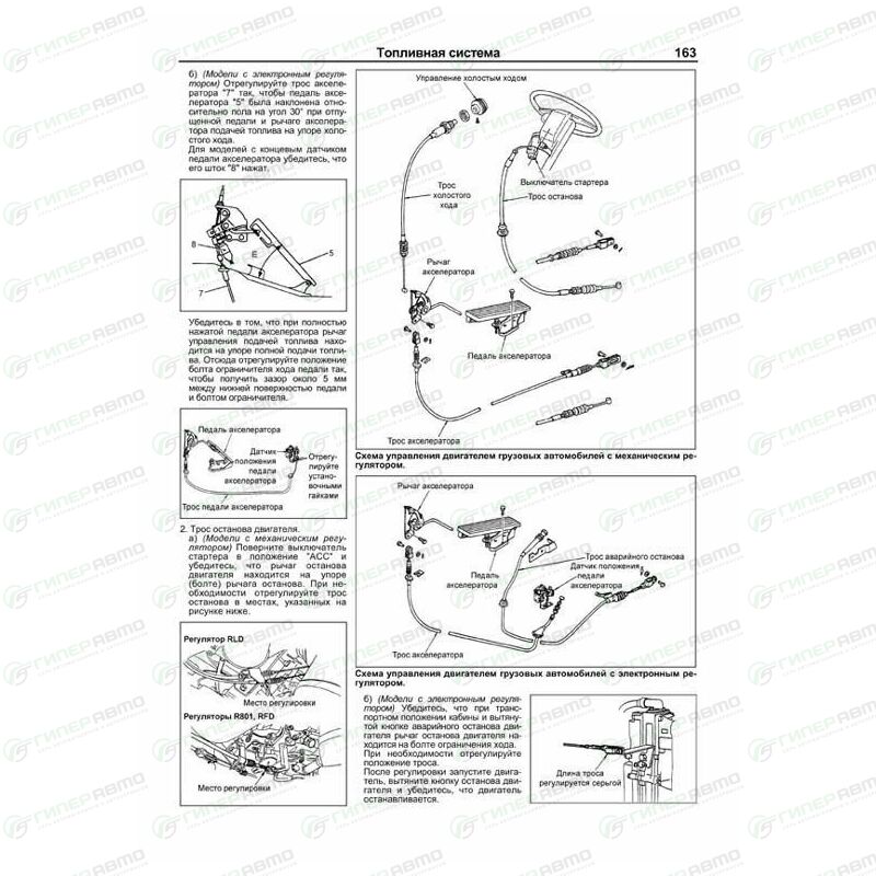 - Подробно рассмотрены настройки и регулировки различных ТНВД и регуляторов (RSV, RFD, R901, R801, RLD-J, включая регулятор RED-III с электронным управлением), форсунок, системы поддержания скорости, системы горного тормоза, моторного тормоза (Powertardo и Jake Brake), инерционного наддува.
