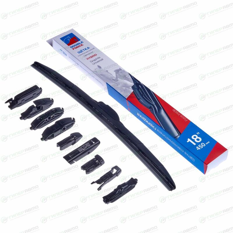 Вы можете купить щетка стеклоочистителя double force 450мм (18") гибридная, всесезонная, 10 переходников, 1 шт, арт. dfhy18 в интернет-магазине автомобильных дворников Гиперавто. Цена на Double Force DFHY18, описание, характеристики и фотографии.