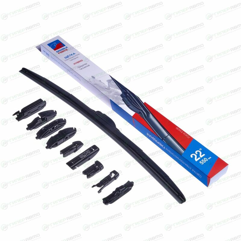 Вы можете купить щетка стеклоочистителя double force 550мм (22") гибридная, всесезонная, 10 переходников, 1 шт, арт. dfhy22 в интернет-магазине автомобильных дворников Гиперавто. Цена на Double Force DFHY22, описание, характеристики и фотографии.