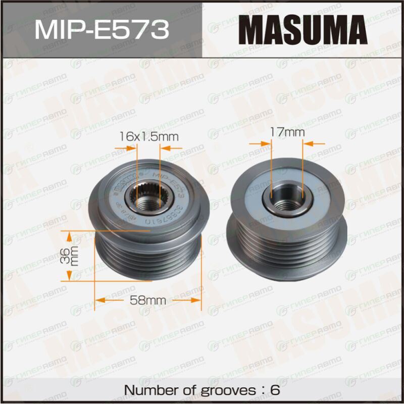 MASUMA MIP-E573. Купить шкив генератора masuma, volvo / b4204s3, b4204s4, b4204s3, b4204s4 по выгодной цене в интернет-магазине запчастей Гиперавто. (83898)