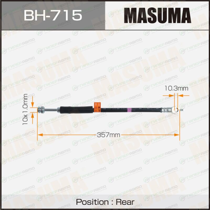 Вы можете купить шланг тормозной masuma mz- /rear/ 6 12- в интернет-магазине тормозных шлангов и трубок Гиперавто. Цена на MASUMA BH-715, описание, характеристики и фотографии.