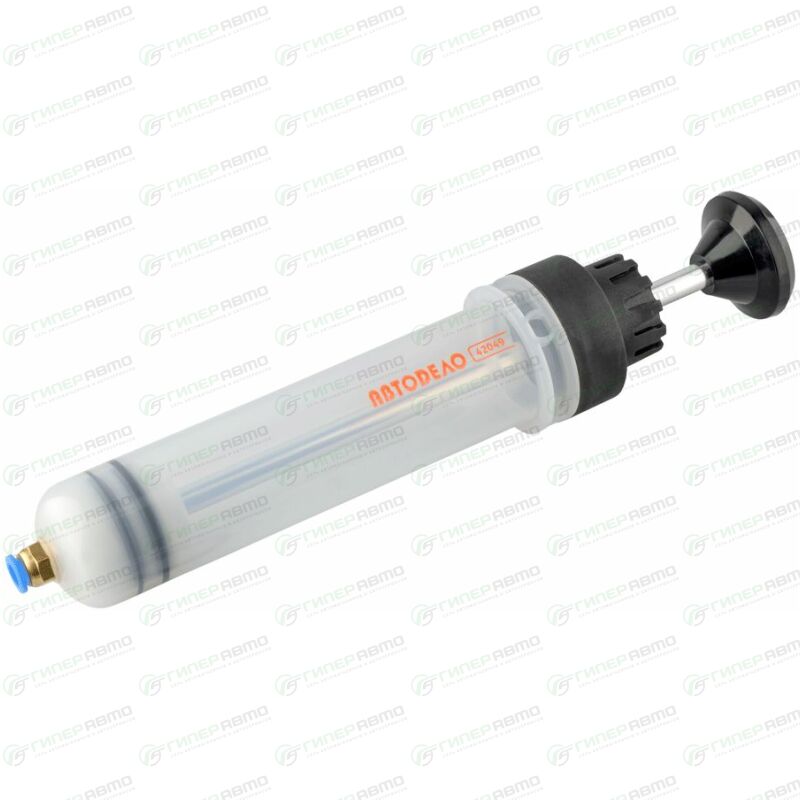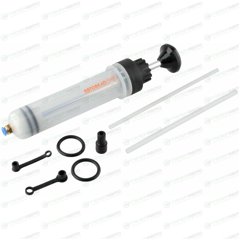Предназначен для заливки и откачки жидких смазочных материалов. Корпус шприца изготовлен из пластика, стойкого к механическим повреждениям и низким температурам. На корпус шприца нанесена мерная шкала для удобства применения. Шприц укомплектован запасными резиновыми кольцами поршня. Укомплектован всасывающей сборной гибкой трубкой.
