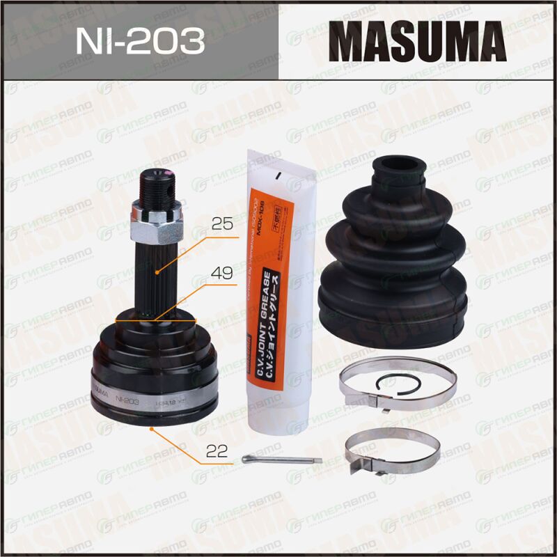 MASUMA NI-203. Купить шрус masuma, 22x49x25мм, арт. ni-203 по выгодной цене в интернет-магазине запчастей Гиперавто. (75006)