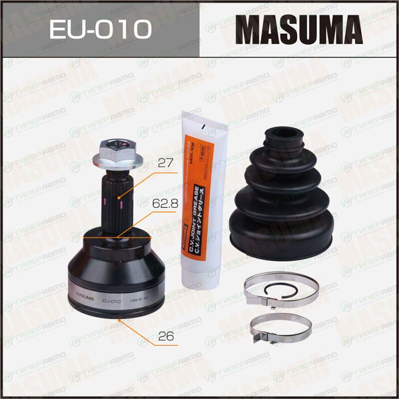 MASUMA EU-010. Купить шрус masuma, 26x62.8x27мм, арт. eu-010 по выгодной цене в интернет-магазине запчастей Гиперавто. (74942)