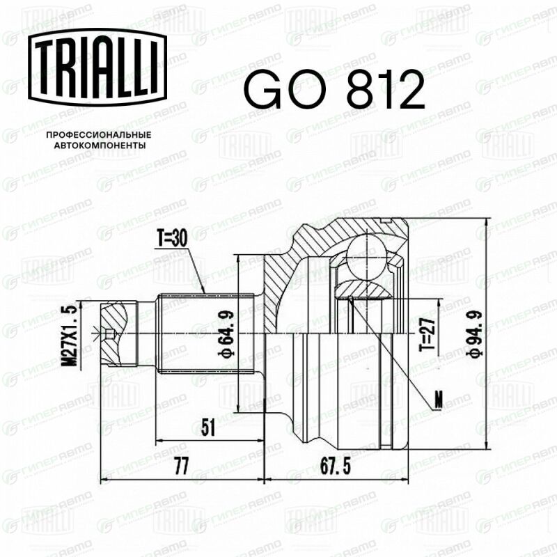 Вы можете купить шрус наруж. перед. go 812 trialli в интернет-магазине шрусов Гиперавто. Цена на Trialli GO 812, описание, характеристики и фотографии.