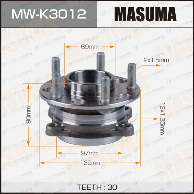 MASUMA MW-K3012. Купить ступица колеса masuma, передняя, для hyundai santa fe, арт. mw-k3012 по выгодной цене в интернет-магазине запчастей Гиперавто. (79089)
