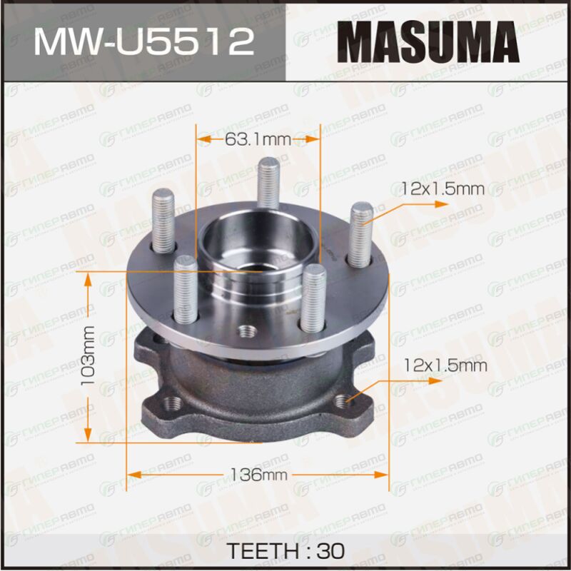 MASUMA MW-U5512. Купить ступица колеса masuma, с abs, задняя, для ford kuga, арт. mw-u5512 по выгодной цене в интернет-магазине запчастей Гиперавто. (74224)