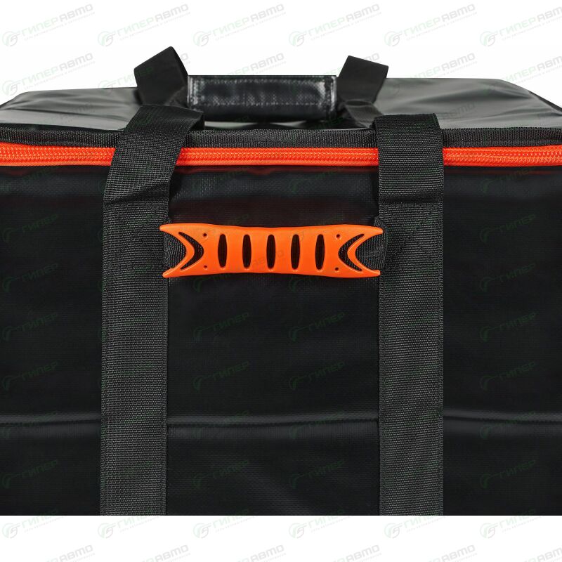 Сумка-холодильник — это надежное средство для обеспечения необходимой температуры и поддержания ее на протяжении длительного периода времени для транспортировки продуктов или других веществ. Сохранение температуры происходит из-за состава изделия, в который входят плотная брезентовая ткань, пена спонж, а также водонепроницаемый, прочный фольгированный материал. Сумка имеет большой размер кубической формы и предназначена для хранения и перевозке в автомобиле, большого количество продуктов. Для удобства открывания, замочки молнии оснащены пуллерами (подвесками).