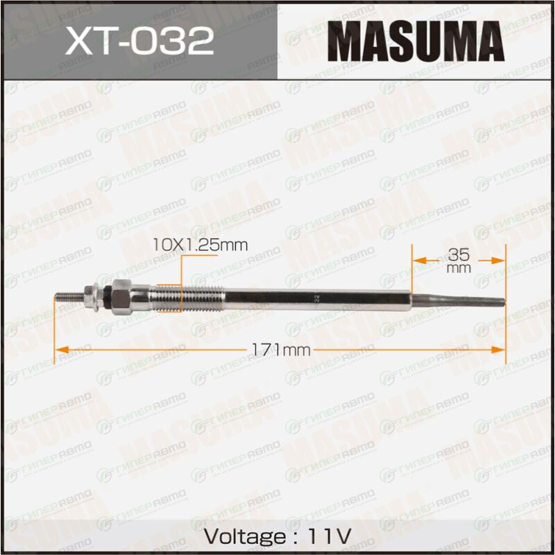 MASUMA XT-032. Купить свеча накаливания masuma (1kd-ftv), арт. xt-032 по выгодной цене в интернет-магазине запчастей Гиперавто. (46361)