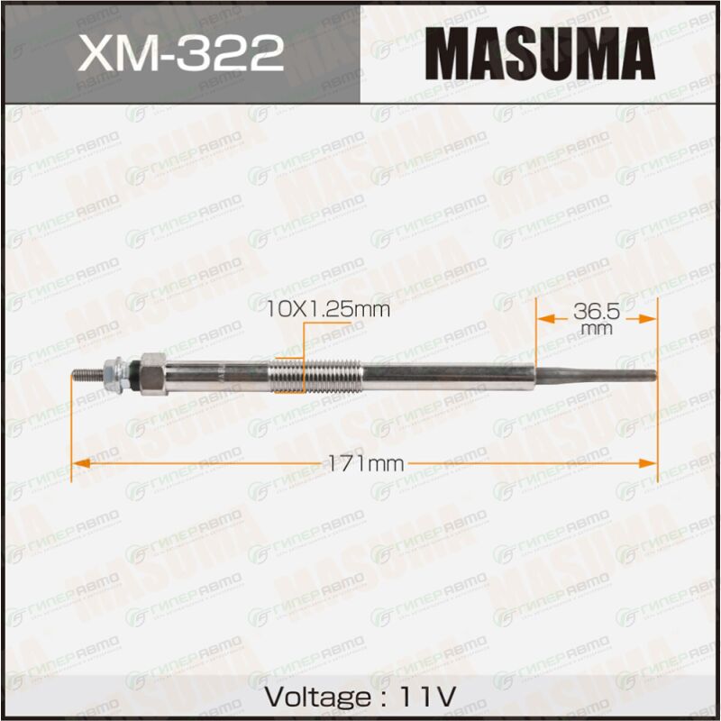 MASUMA XM-322. Купить свеча накаливания masuma (4m41 di), арт. xm-322 по выгодной цене в интернет-магазине запчастей Гиперавто. (46360)