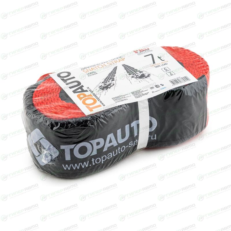 Высококачественные динамические стропы (рывковые тросы) TOPAUTO 7 т произведены из высокотехнологичной полиэфирной ленты. При рывке застрявшего автомобиля динамическая стропа растягивается, аккумулируя в себе энергию, а затем мягко прилагает её, обеспечивая деликатный возврат на твёрдое покрытие.
