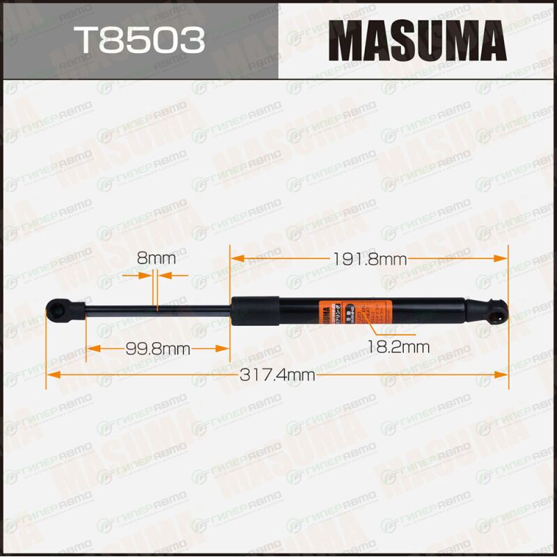 MASUMA T8503. Купить упор газовый багажника masuma, l=317.4mm (1/40) по выгодной цене в интернет-магазине запчастей Гиперавто. (74028)