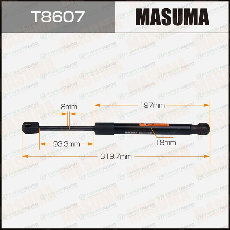 MASUMA T8607. Купить упор газовый багажника masuma, l=319.7mm (1/40) по выгодной цене в интернет-магазине запчастей Гиперавто. (74053)