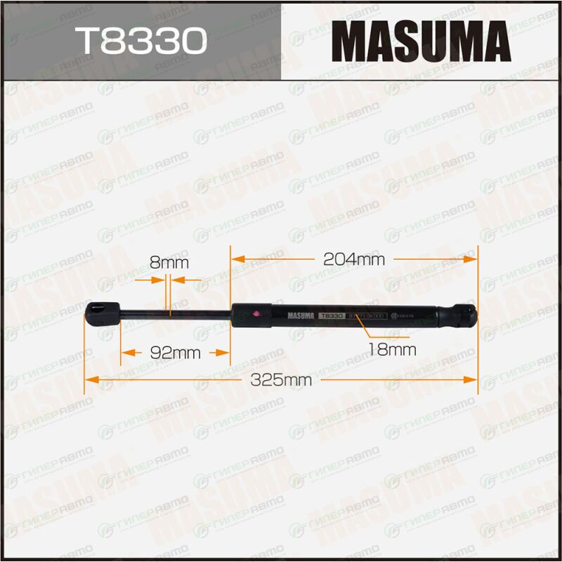MASUMA T8330. Купить упор газовый багажника masuma, l=325mm (1/40) по выгодной цене в интернет-магазине запчастей Гиперавто. (78941)