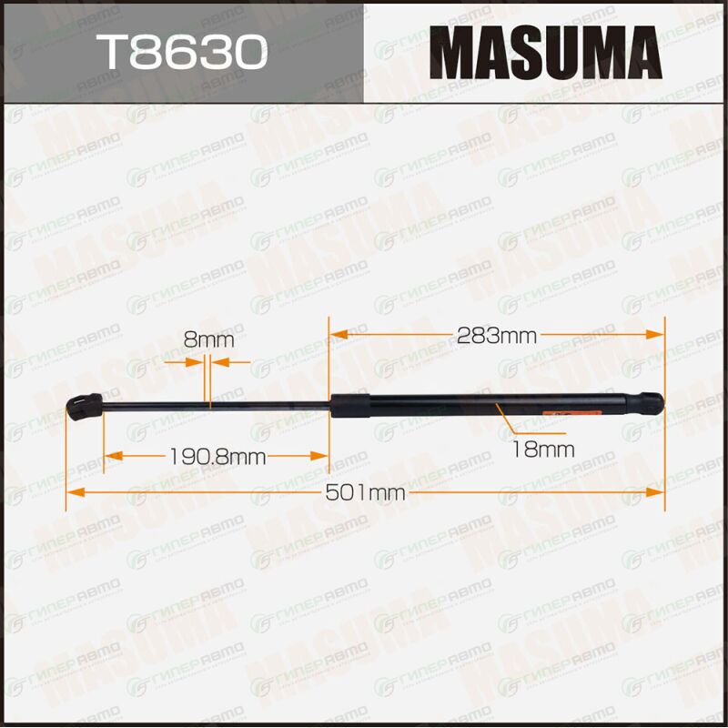 MASUMA T8630. Купить упор газовый багажника masuma, l=501mm (1/40) по выгодной цене в интернет-магазине запчастей Гиперавто. (74078)