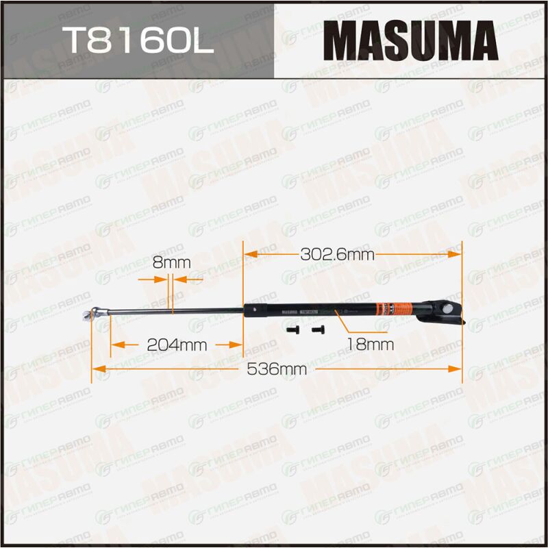 MASUMA T8160L. Купить упор газовый багажника masuma, l=536mm (1/40) по выгодной цене в интернет-магазине запчастей Гиперавто. (78897)