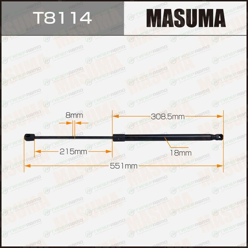 Вы можете купить упор газовый багажника masuma, l=551mm (1/40) в интернет-магазине амортизаторов капота и задней двери Гиперавто. Цена на MASUMA T8114, описание, характеристики и фотографии.