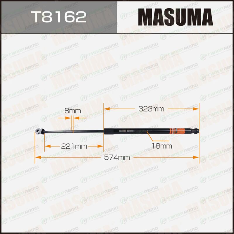 MASUMA T8162. Купить упор газовый багажника masuma, l=574mm (1/40) по выгодной цене в интернет-магазине запчастей Гиперавто. (78905)