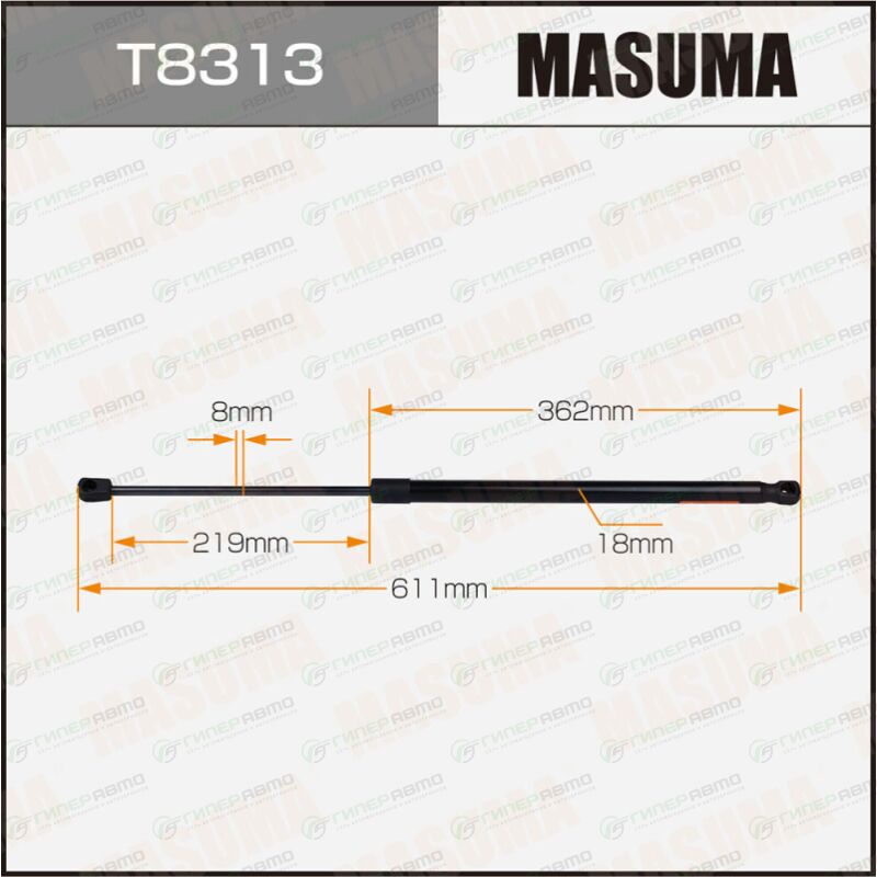 MASUMA T8313. Купить упор газовый багажника masuma, l=611mm (1/40) по выгодной цене в интернет-магазине запчастей Гиперавто. (74016)