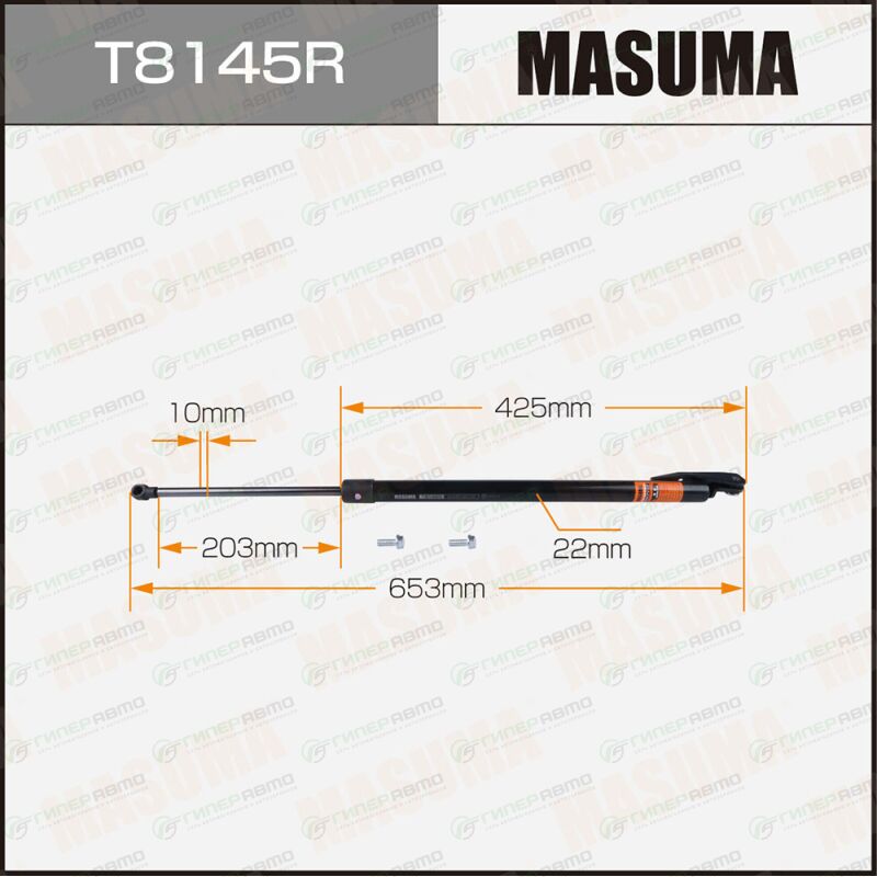 Вы можете купить упор газовый багажника masuma, l=653mm (1/40) в интернет-магазине амортизаторов капота и задней двери Гиперавто. Цена на MASUMA T8145R, описание, характеристики и фотографии.