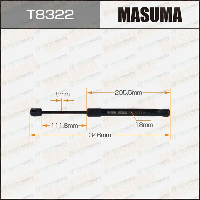 MASUMA T8322. Купить упор газовый капота masuma, l=346mm (1/40) по выгодной цене в интернет-магазине запчастей Гиперавто. (78930)