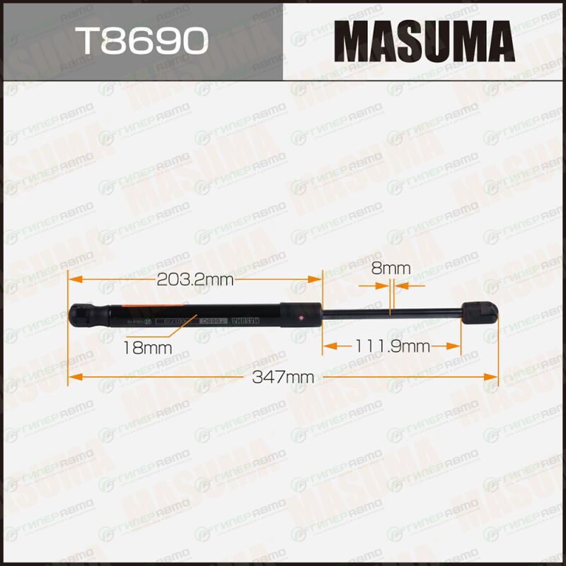 MASUMA T8690. Купить упор газовый капота masuma, l=347mm (1/40) по выгодной цене в интернет-магазине запчастей Гиперавто. (78943)