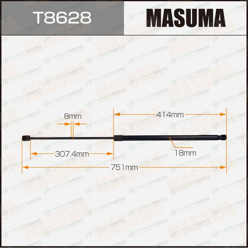 MASUMA T8628. Купить упор газовый капота masuma, l=751mm (1/40) по выгодной цене в интернет-магазине запчастей Гиперавто. (74075)