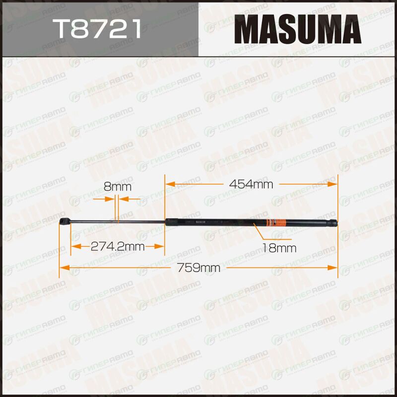 Вы можете купить упор газовый капота masuma, l=759mm (1/40) в интернет-магазине амортизаторов капота и задней двери Гиперавто. Цена на MASUMA T8721, описание, характеристики и фотографии.