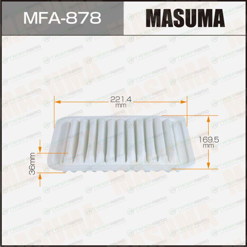 Вы можете купить воздушный фильтр a-755 masuma в интернет-магазине воздушных фильтров Гиперавто. Цена на MASUMA MFA-878, описание, характеристики и фотографии.