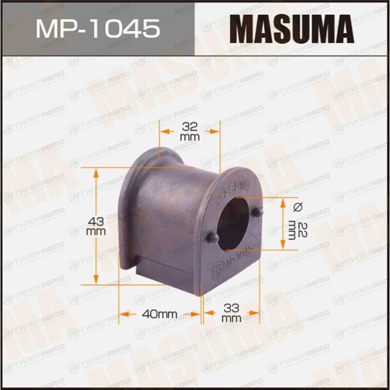 Вы можете купить втулка стабилизатора masuma, арт. mp-1045 в интернет-магазине втулок подвески Гиперавто. Цена на MASUMA MP-1045, описание, характеристики и фотографии.