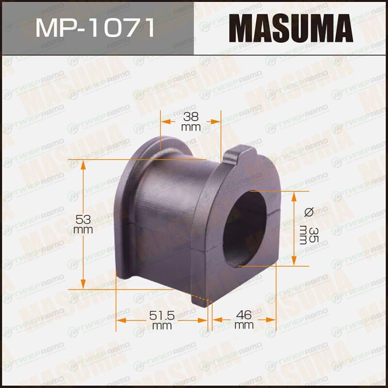 Вы можете купить втулка стабилизатора masuma, арт. mp-1071 в интернет-магазине втулок подвески Гиперавто. Цена на MASUMA MP-1071, описание, характеристики и фотографии.
