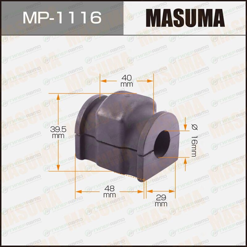 Вы можете купить втулка стабилизатора masuma, арт. mp-1116 в интернет-магазине втулок подвески Гиперавто. Цена на MASUMA MP-1116, описание, характеристики и фотографии.