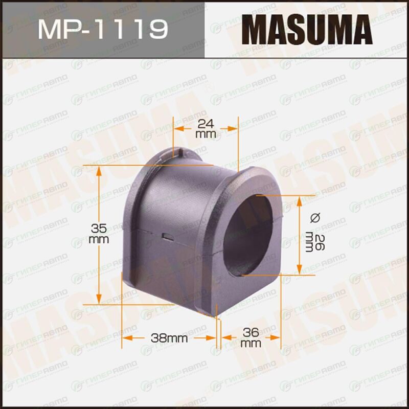 Вы можете купить втулка стабилизатора masuma, арт. mp-1119 в интернет-магазине втулок подвески Гиперавто. Цена на MASUMA MP-1119, описание, характеристики и фотографии.